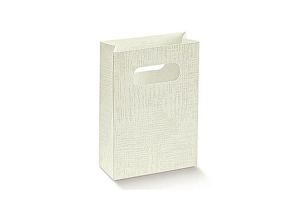 Bag in cartoncino luxury con diverse texure per inserire piccole attenzioni per gli ospiti con fiocco color evento