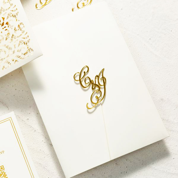 Eleganti intagli laser in acrilico per impreziosire i vostri inviti e loggare i vostri pacchi regalo.