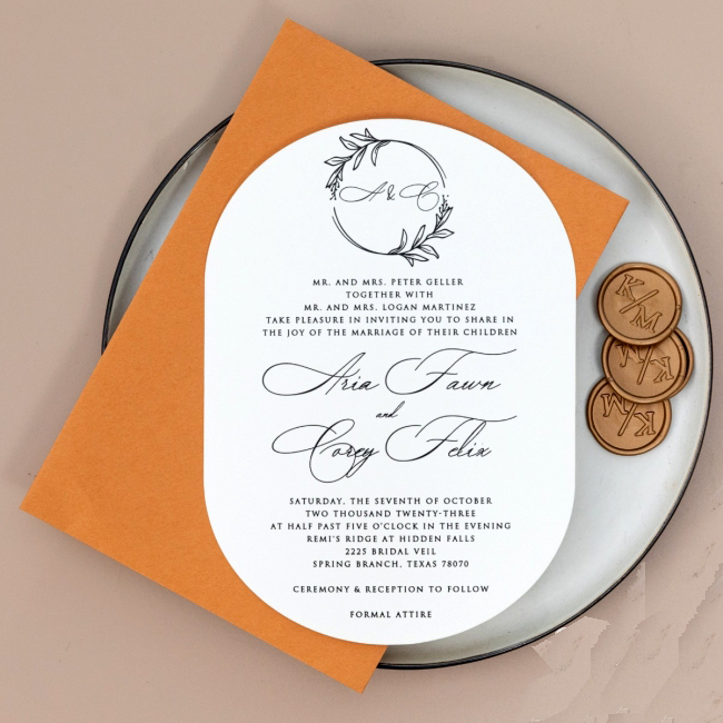 Elegante e raffinata partecipazione con grafica personalizzata dal particolare formato. Cartiera Fedrigoni di Fabriano 250gr in differenti colori sia mat opaco che perlato. Prezzo completo di stampa digitale e busta.