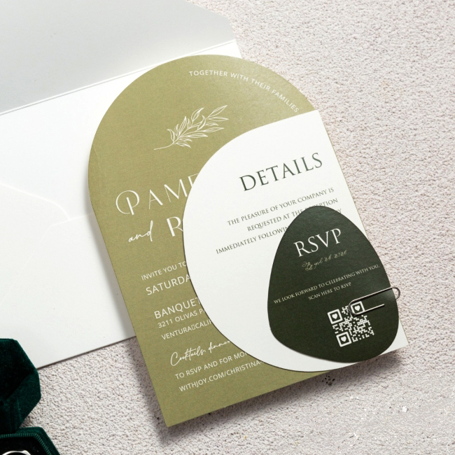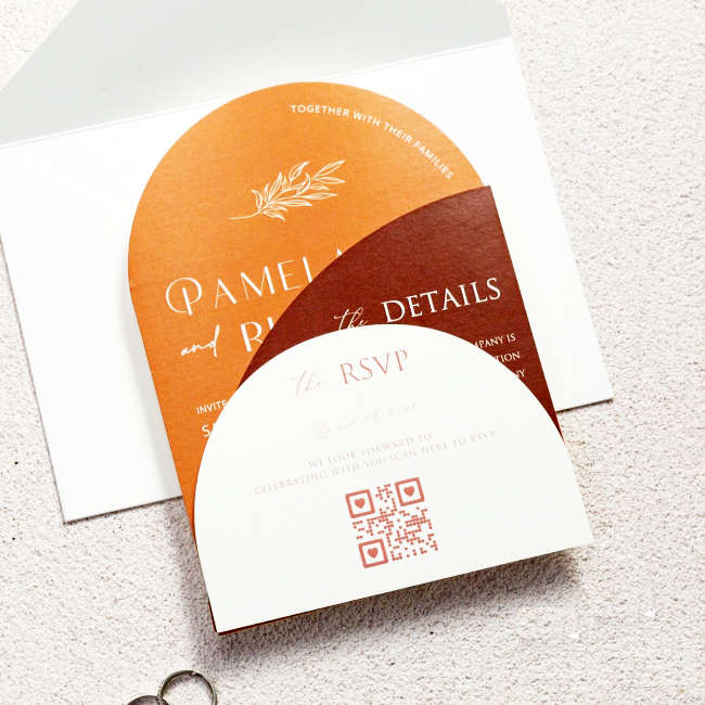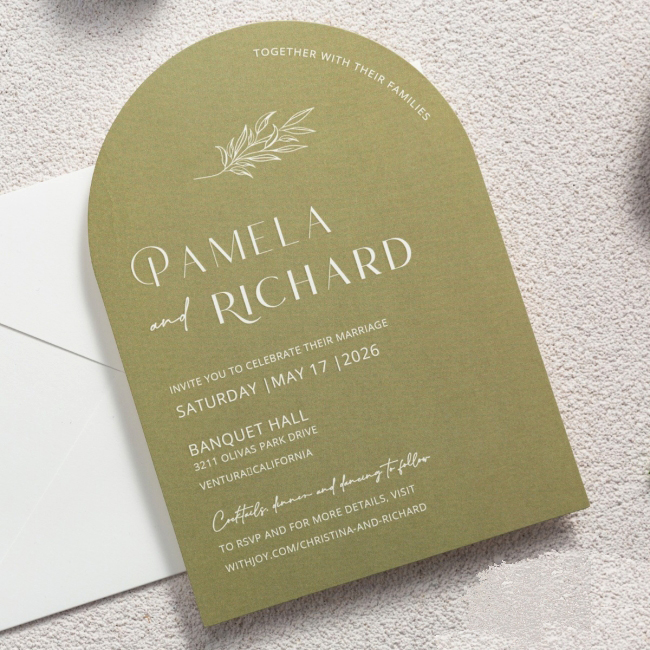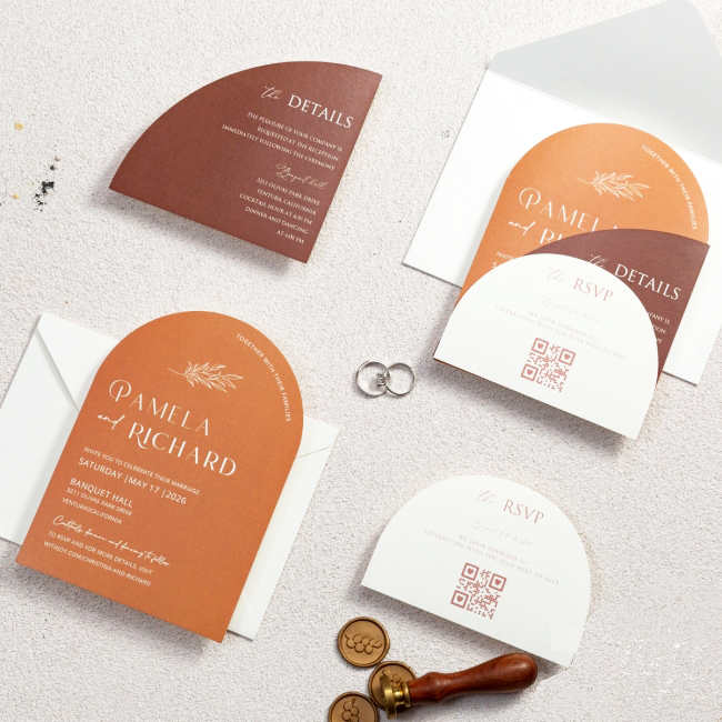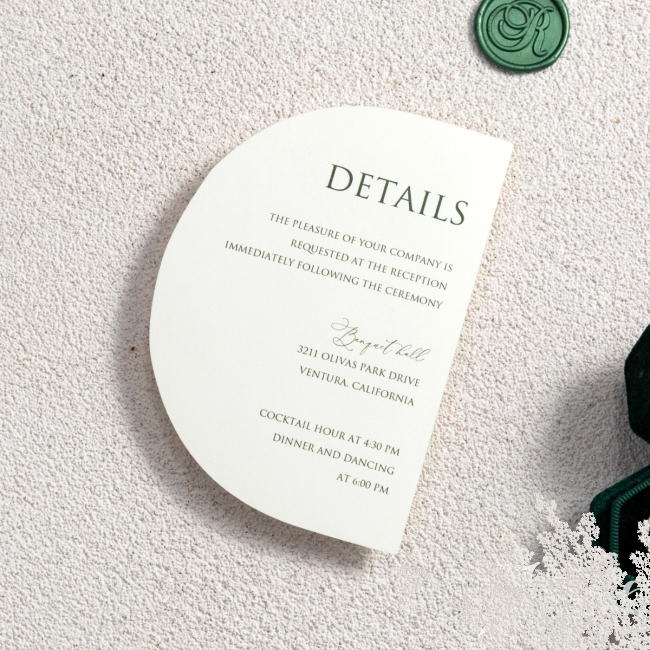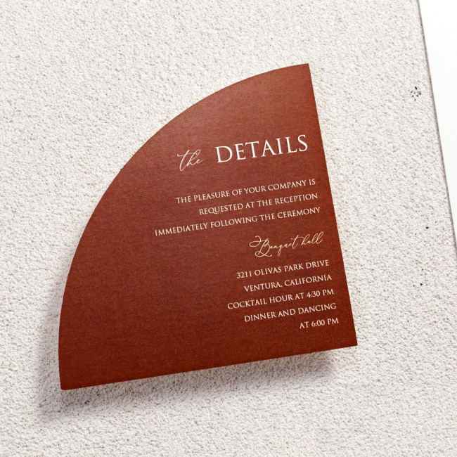 Elegante e raffinata partecipazione con grafica personalizzata dal particolare formato. Cartiera Fedrigoni di Fabriano 250gr in differenti colori sia mat opaco che perlato. Prezzo completo di stampa digitale e busta.