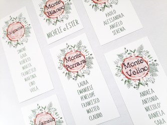 - STAMPA NOMI INVITATI SU CARTONCINI SINGOLARMENTE DIVISI E AVENTI SUL RETRO PELLICOLA BIADESIVA PER COMPORRE I TAVOLI ALL’ULTIMO MOMENTO
