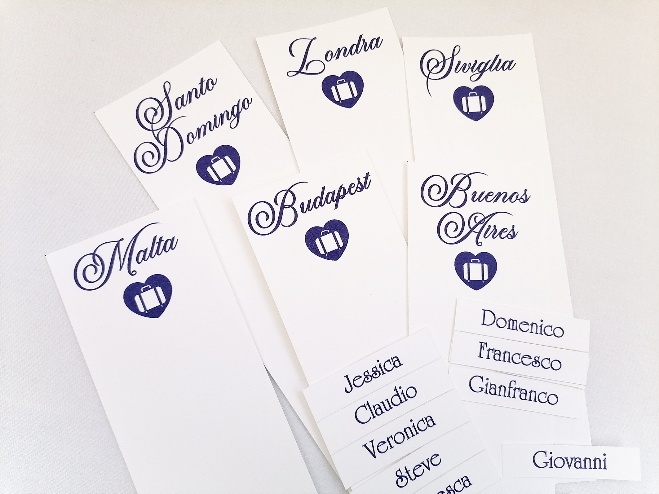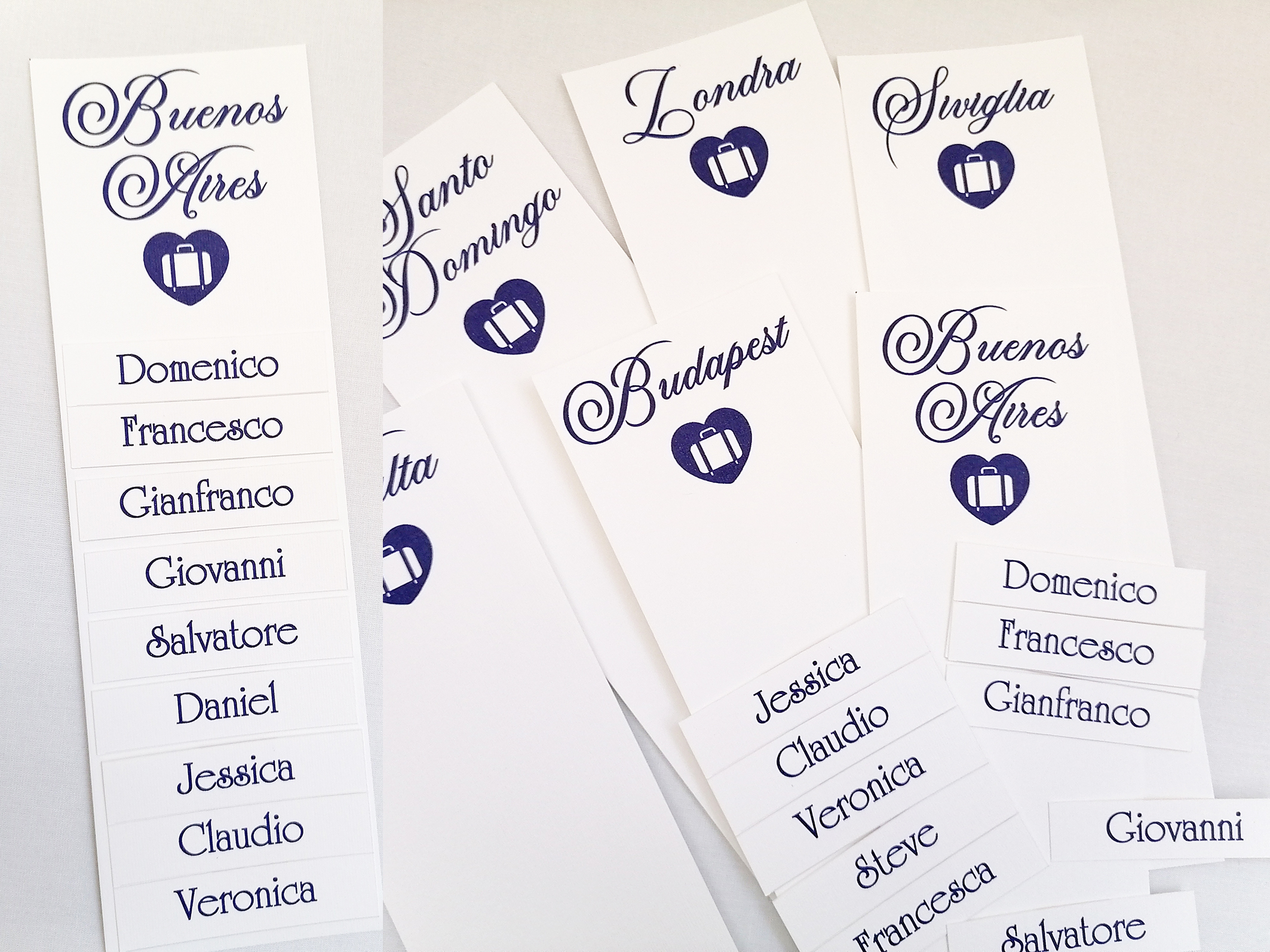- STAMPA NOMI INVITATI SU CARTONCINI SINGOLARMENTE DIVISI E AVENTI SUL RETRO PELLICOLA BIADESIVA PER COMPORRE I TAVOLI ALL’ULTIMO MOMENTO